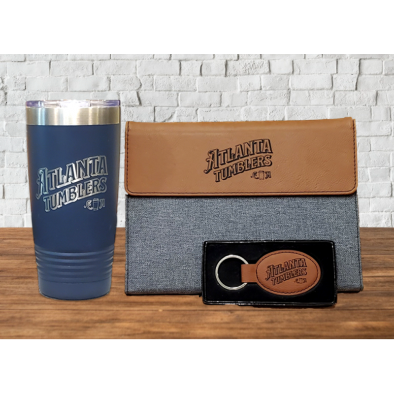 (2) a 7" x 9" Tweed and Leatherette Porfolio engraved with your company name on it