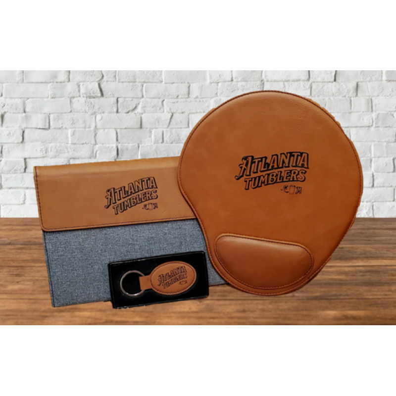 (2) a 7" x 9" Tweed and Leatherette Porfolio engraved with your company name on it